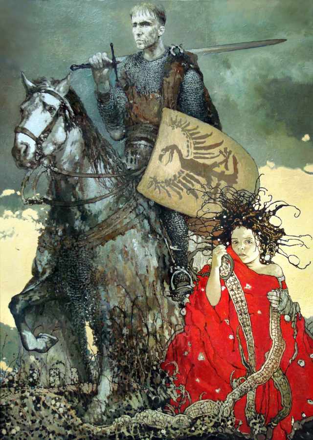 Stanislav Krupp's female images, painted in an impressionistic manner, are striking with their richness and boldness of colours and expressed emotions. Mysterious, shimmering, as if seen through the prism of rain or autumn mist (‘The Night Wind’, ‘In the Mirrors of Autumn’, ‘Mermaid Games’), Stanislav Krupp's female images are endowed with an aura of sublimity, like an echo of that very elusive ideal in search of which the artist journeys. Creating artworks that feature images from the medieval period, the artist reinterprets the past and presents its mysteries in the reality of the present days.